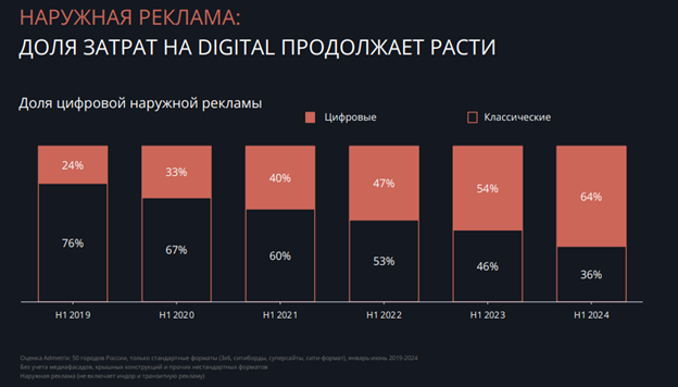 На таблице ниже можно увидеть, с какой скоростью растет рекламный рынок в РФ: об этом свидетельствует увеличение объема денежных затрат рекламодателей на наружную рекламу (источник данных: Admetric).