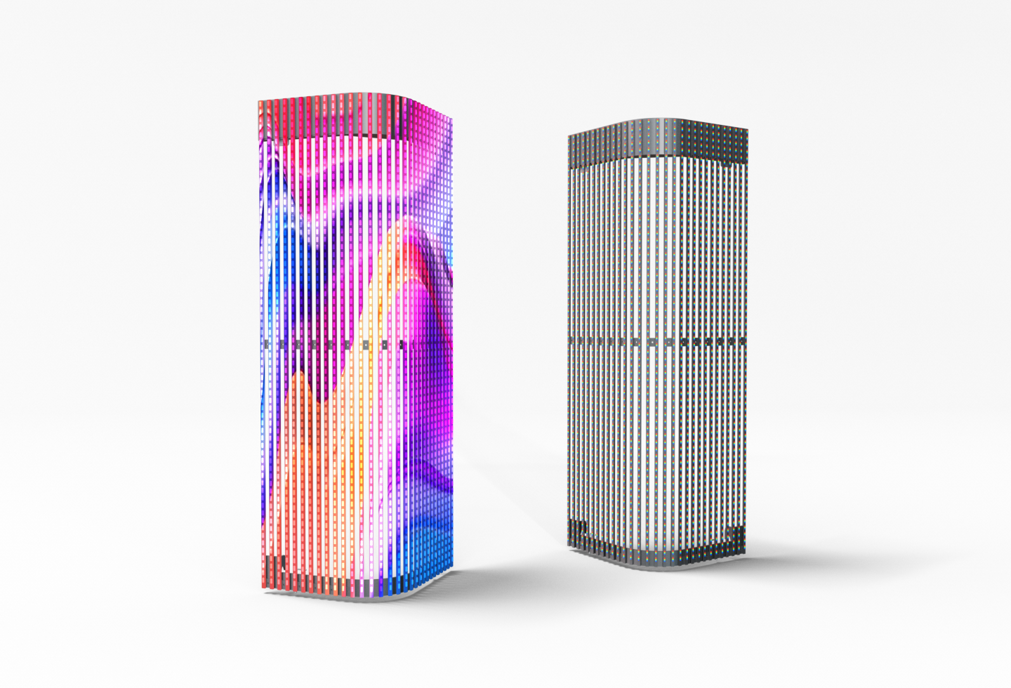 Медиафасад — это светодиодная конструкция, монтируемая на стены, стеклянные фасады зданий. Сочетает функциональность рекламного носителя с архитектурой здания, сохраняет визуальную легкость и не нарушает внешний облик объектов. В отличие от обычных экранов, он монтируется непосредственно на стены или стеклянные поверхности фасадов с помощью легких ферм, сохраняя небольшой зазор от стены.