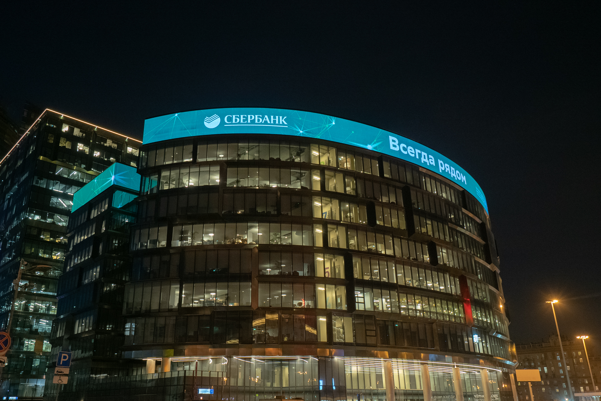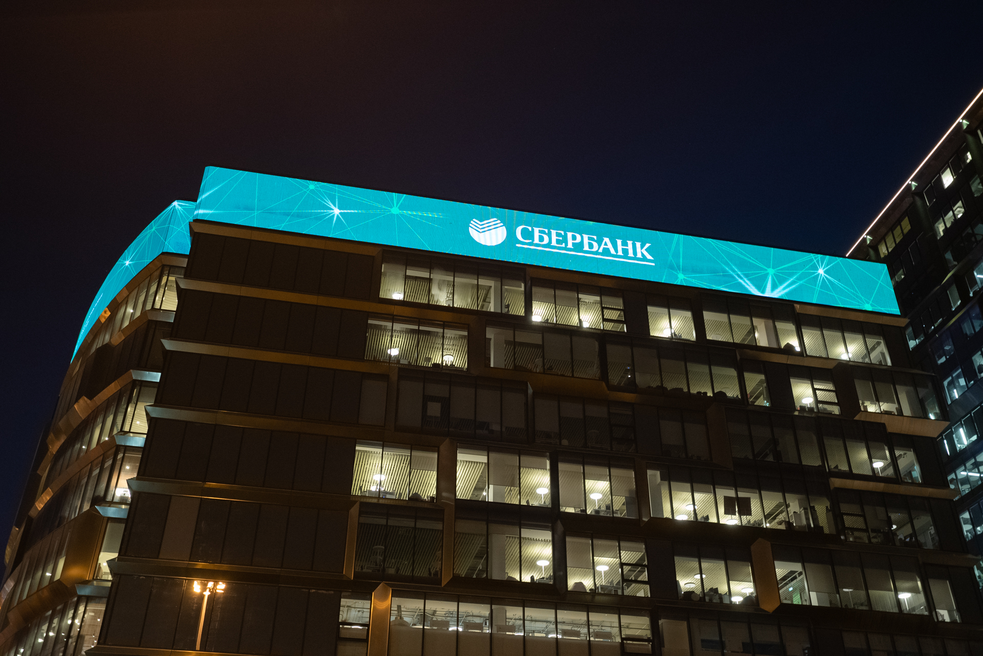 Медиафасад на здании Сбербанка
