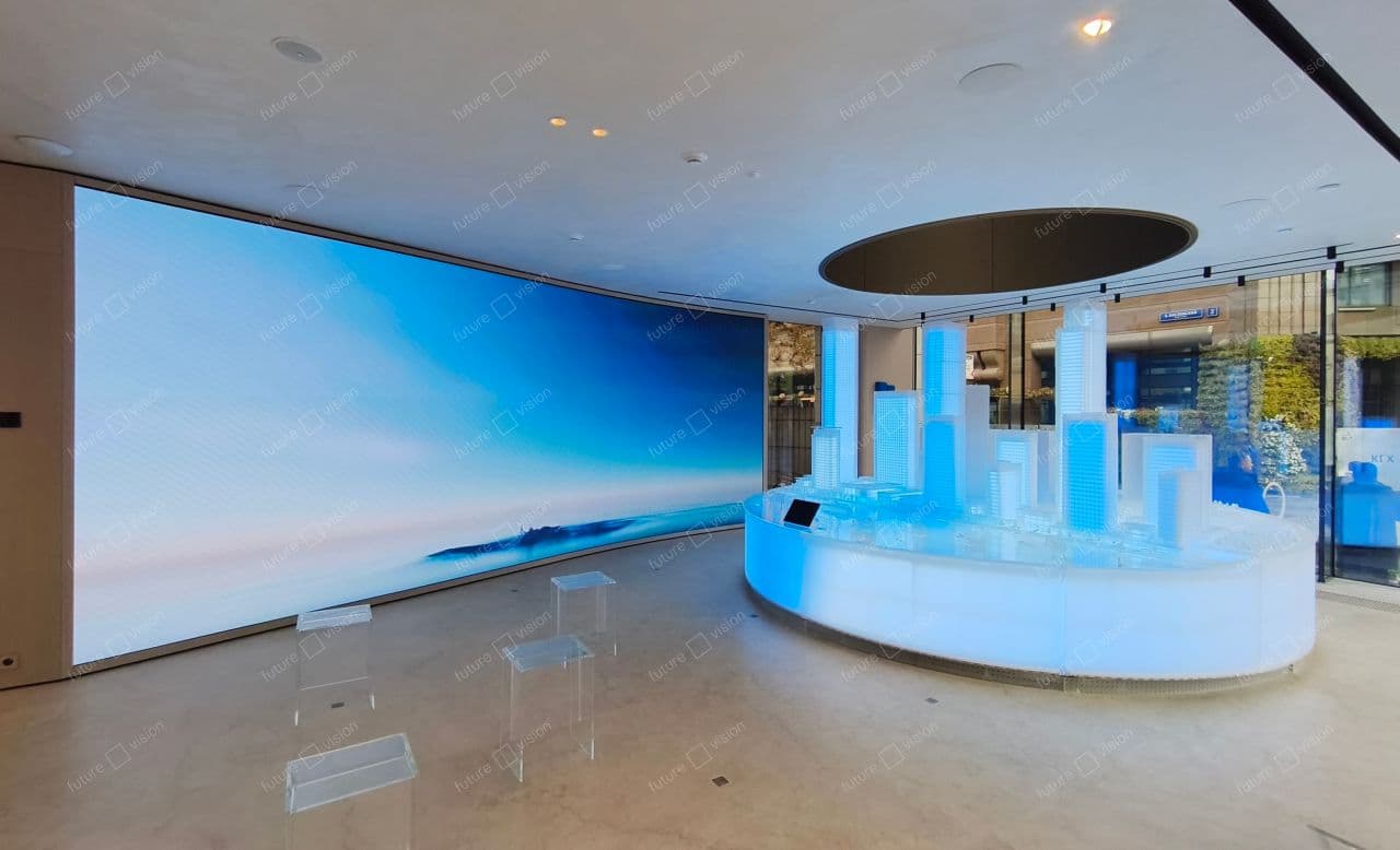 Компания Future Vision изготовила и установила современный светодиодный экран для офиса продаж девелопера LEGENDA в городе Москва. Светодиодная стена размером 4 080 х 2 880 мм стала ярким технологичным акцентом всего помещения. С помощью LED стены застройщик сможет презентовать жилые комплексы и другие решения компании более креативно, эффективно и динамично в сравнении со статичными изображениями. Частота обновления 3840 Гц и малый шаг пикселя Р1.25 обеспечивают повышенное качество изображения с минимального расстояния.