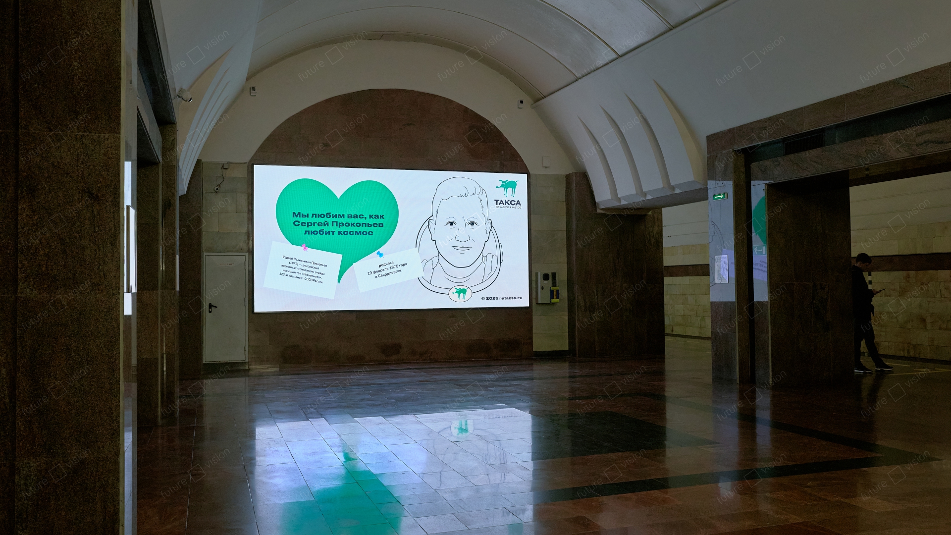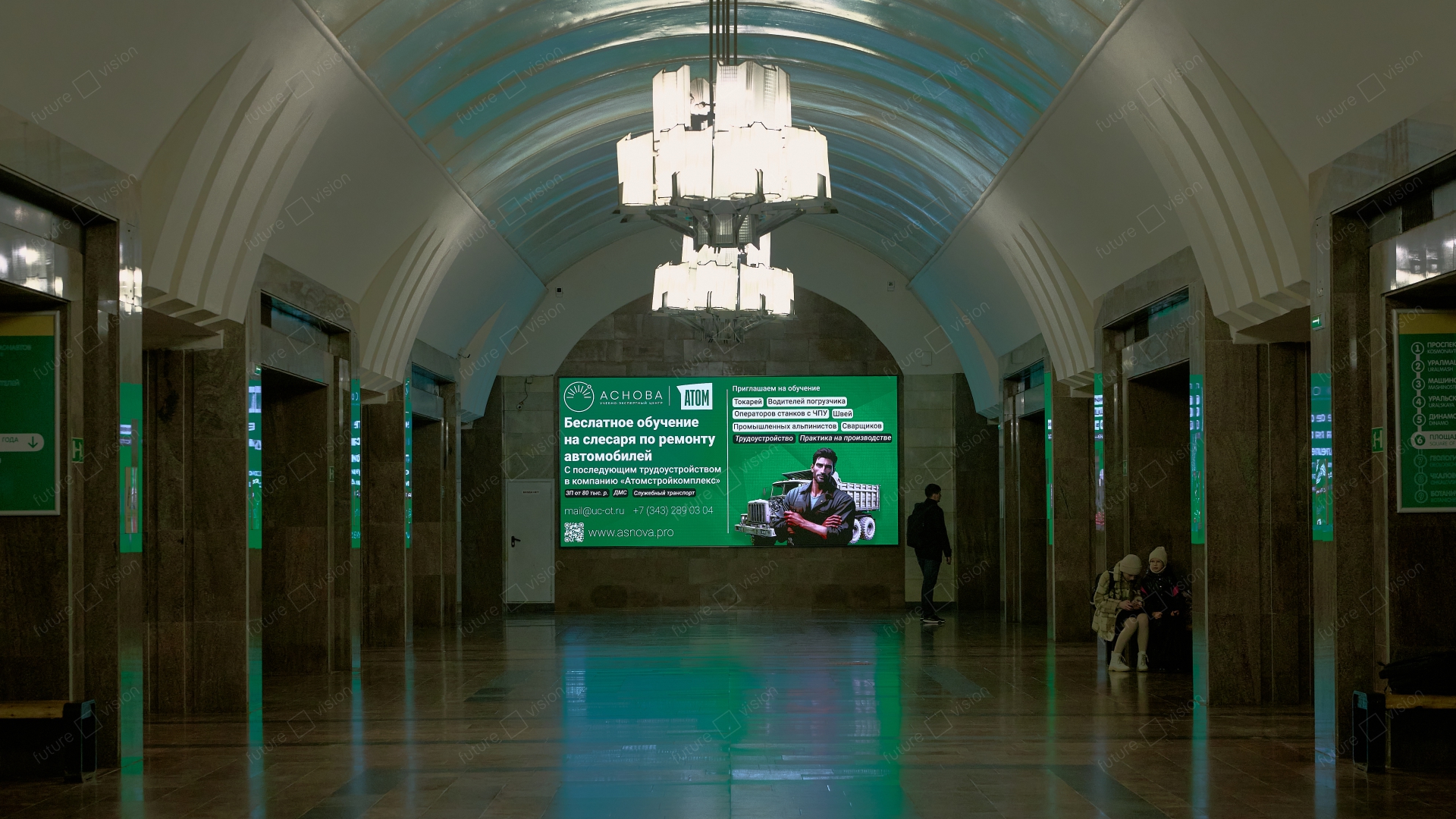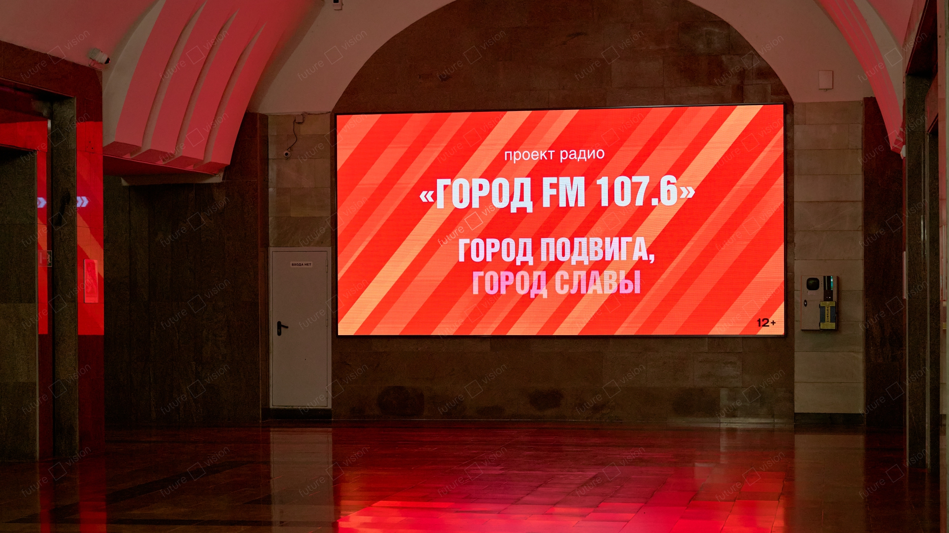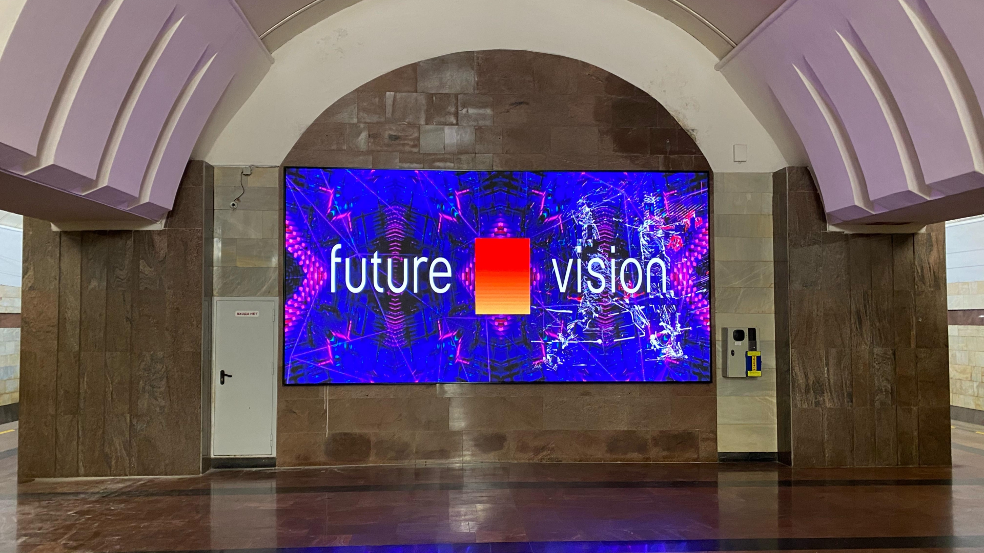 Компания Future Vision изготовила и установила светодиодный экран на станции метро «1905 года» в городе Екатеринбург, который расположен прямо в зоне ожидания поездов — там, где пассажиры проводят несколько минут в статике, и визуальный контент работает особенно эффективно.