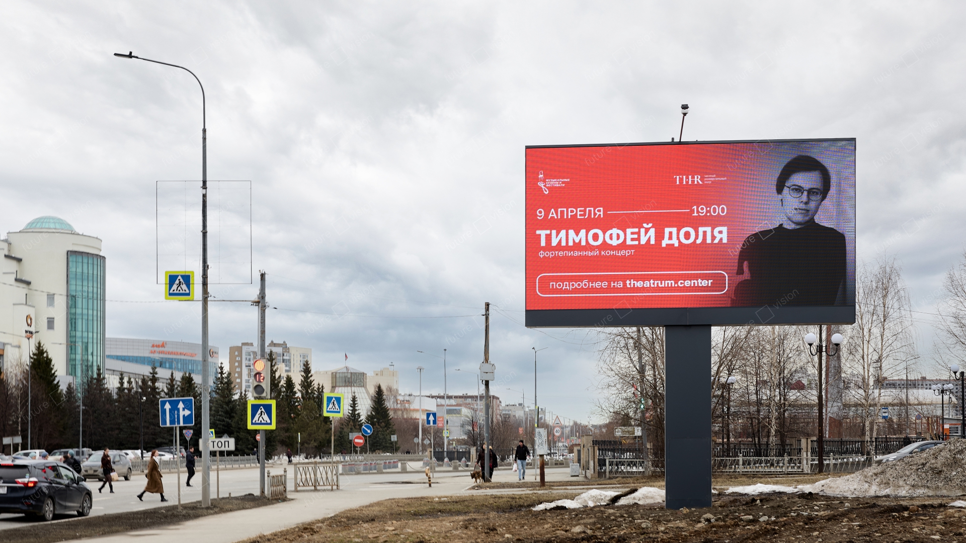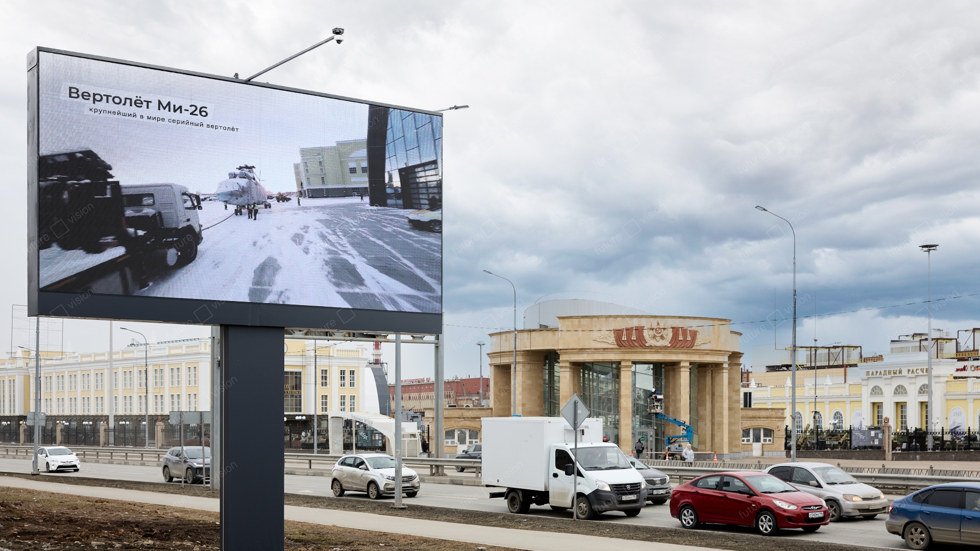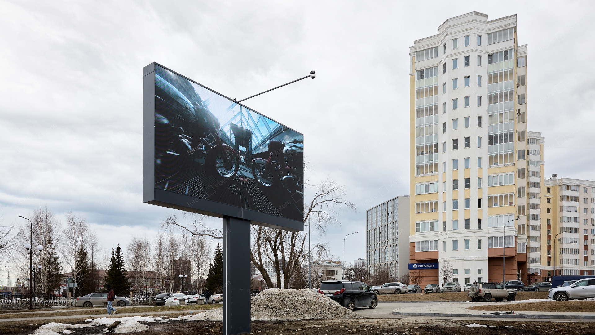 Шаг пикселя Р5,6 гарантирует отличную видимость, а также высокий охват аудитории: просмотр контента обеспечен для пешеходных зон с нескольких сторон, а также для двух направлений движения автомобилей. Экран устойчив к любым погодным условиям, выдерживает высокие ветровые нагрузки.