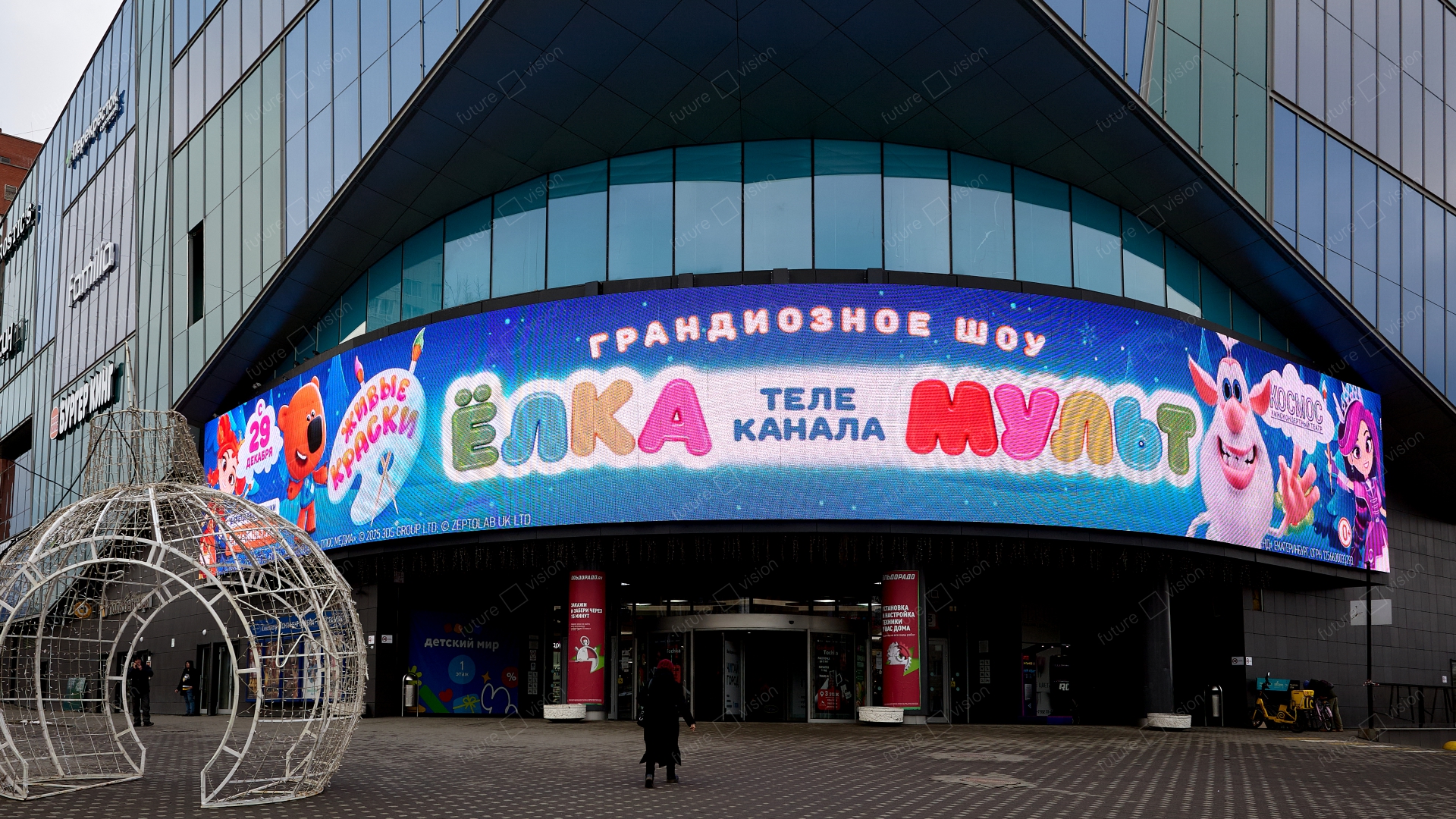 Специалисты завода Future Vision изготовили и установили светодиодный медиафасад для торгово-развлекательного центра «Алатырь», город Екатеринбург. Размер экрана составляет 42 500 х 5 000 мм, площадь — 212 м2, шаг пикселя — Р16-16.
