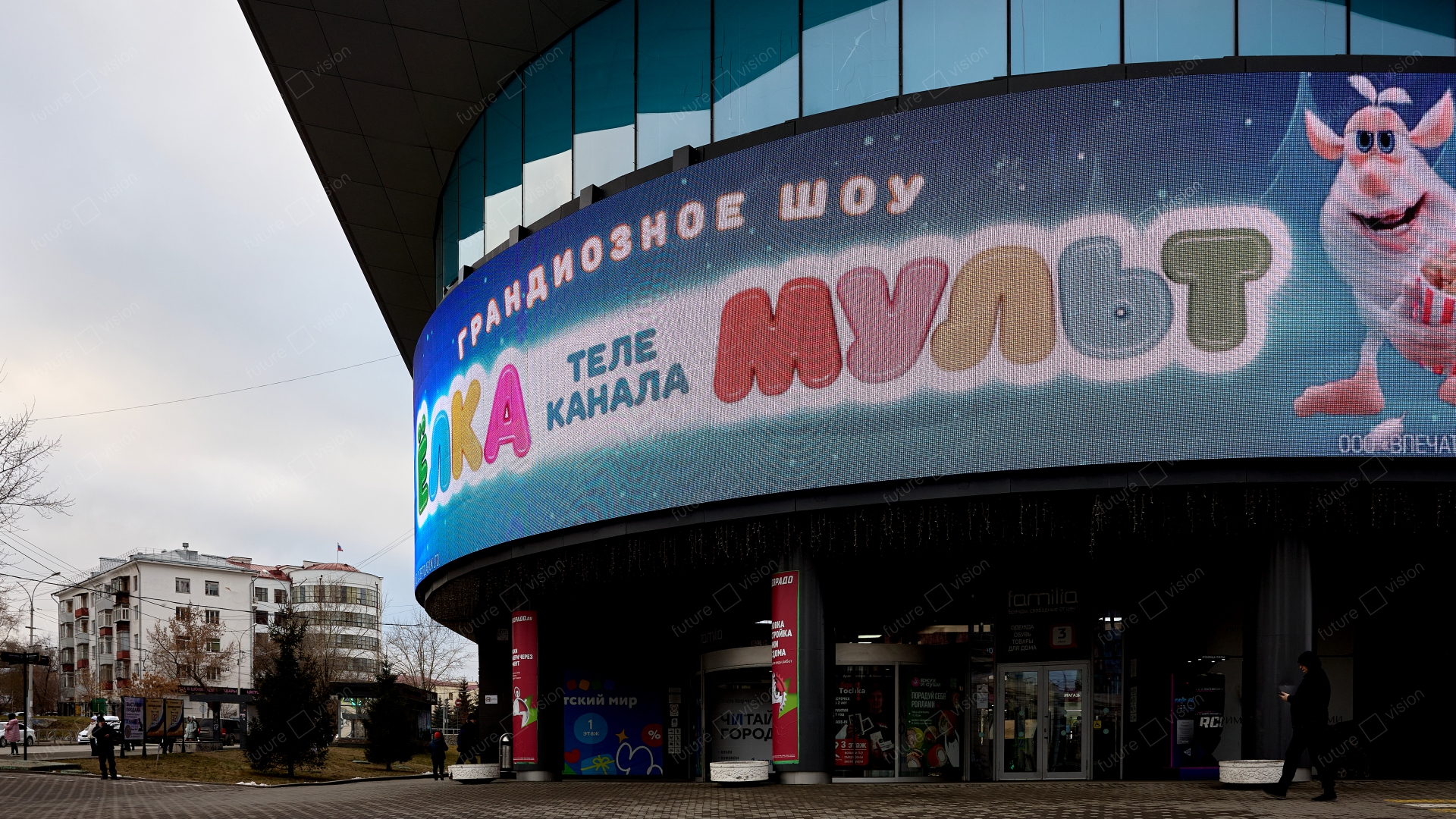 Второй светодиодный медиафасад установлен в 2020 году с другой стороны ТРЦ «Алатырь».