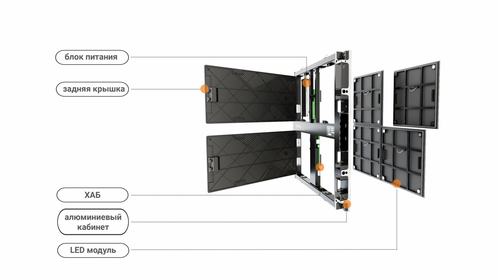 Структура кабинета CDI:Алюминиевый кабинет экрана CDI размером 500 х 500 мм состоит из: